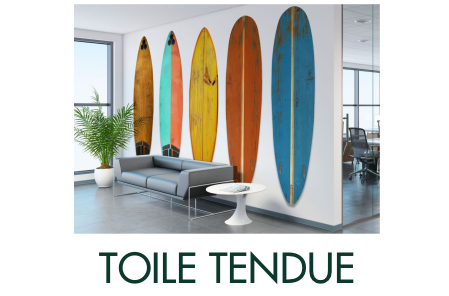 - Papiers peints : ce type de support donne du caractère à votre stand. Il existe dans une version adhésive ou à coller. Il peut couvrir votre comptoir afin d’offrir un visuel personnalisé.
